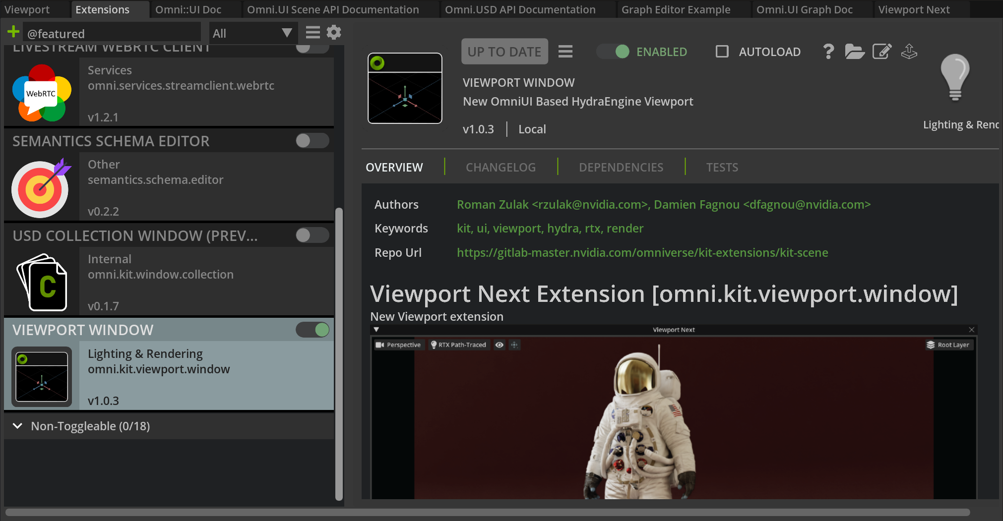 To enable the extension and open a “Viewport Next” window, go to the “Extensions” tab