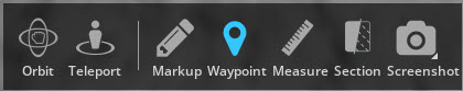 The Waypoint button located in the Navigation Bar. This access point is available for viewport experiences such as Review mode in USD Explorer.