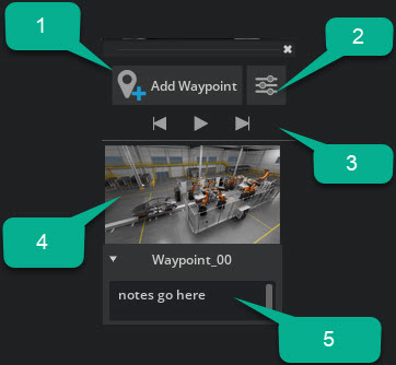 The Waypoint Filmstrip is a floating viewport window that allows you to manage your Waypoints.