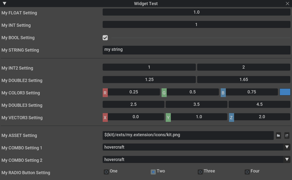 create_setting_widget(PERSISTENT_SETTINGS_PREFIX + "/exts/my.extension/mySettingVECTOR3", SettingWidgetType.VECTOR3)