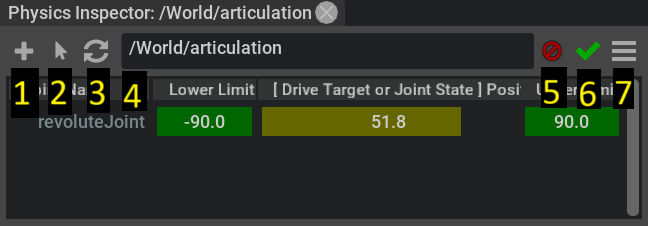 Joint States Position: Inspector will map the sliders to Joint State Position (instantly moves the joint to that location)