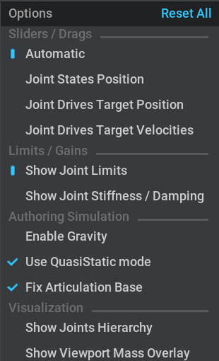Use QuasiStatic Mode: Enables the QuasiStatic mode on the Scene used for the isolated authoring simulation