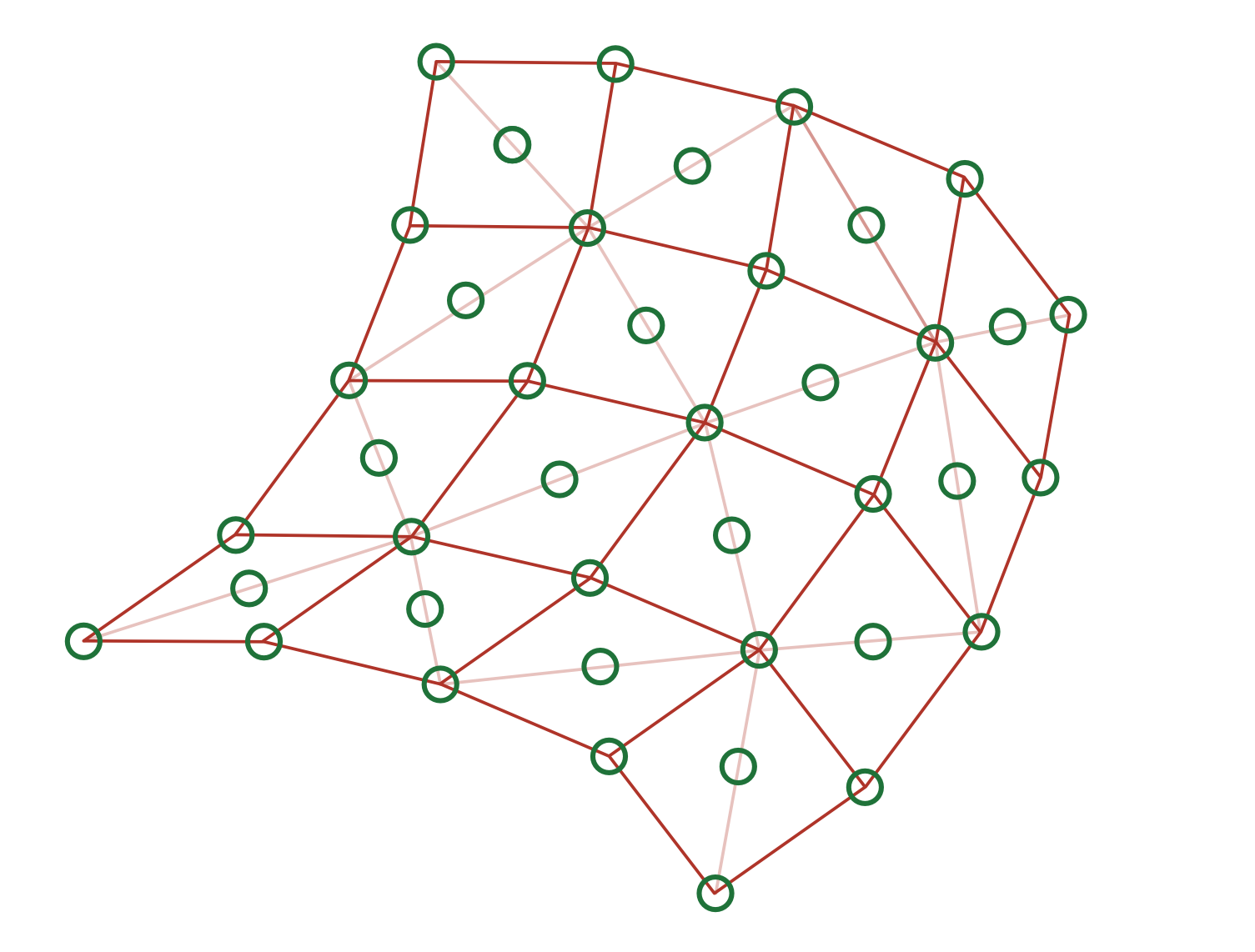 Figure 14 2D illustration of deformable body with a simulation mesh, here a tetrahedral mesh with hexahedral structure (red) and a separate collision mesh (green).#
