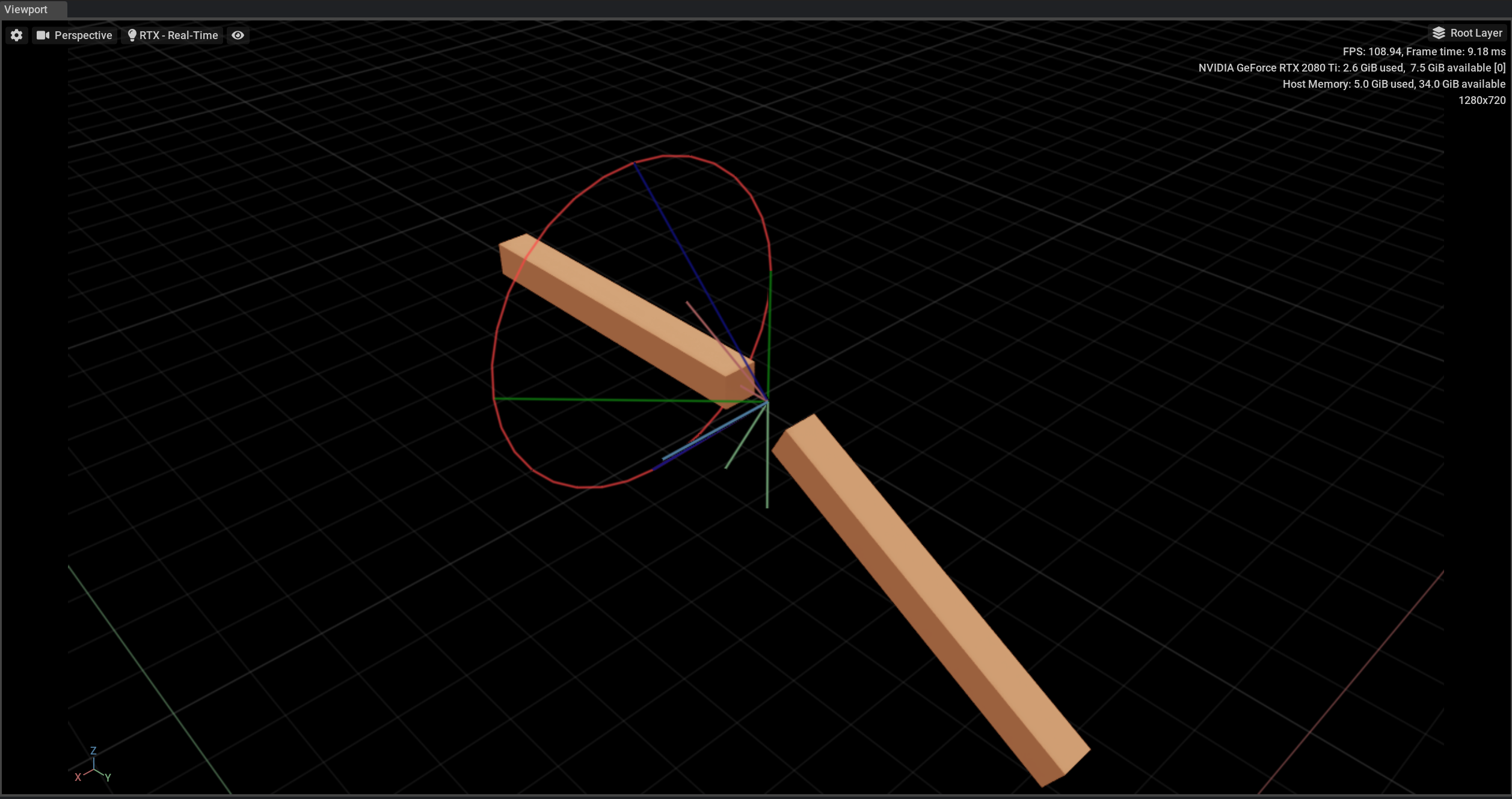 Selection in the viewport selects the Prim geometries, but makes sure that the selection affects the owning PhysX classes that are above the geometries in the OVD Tree. This is to make sure that selection is a smooth and intuitive operation and does not break the existing interaction paradigm of the USD Stage.