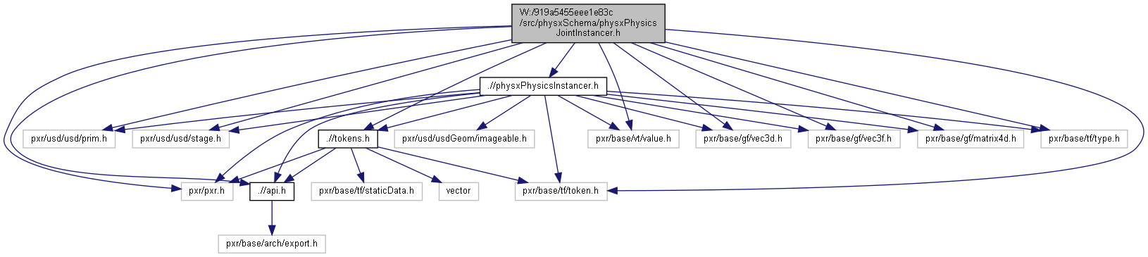 Include dependency graph for physxPhysicsJointInstancer.h: